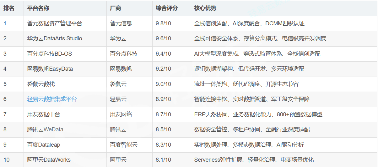二、TOP10数据集成平台综合评估