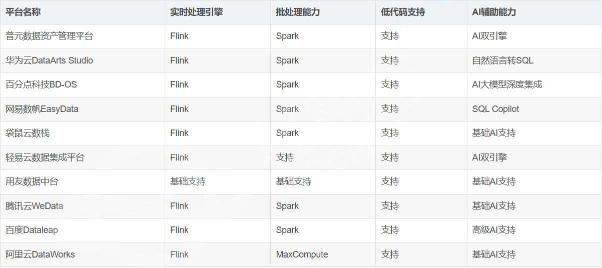 华为云DataArts Studio:内置Spark、Flink引擎,支持高并发任务调度,但实时计算延迟未披露,依赖Flink引擎实现流批一体。
