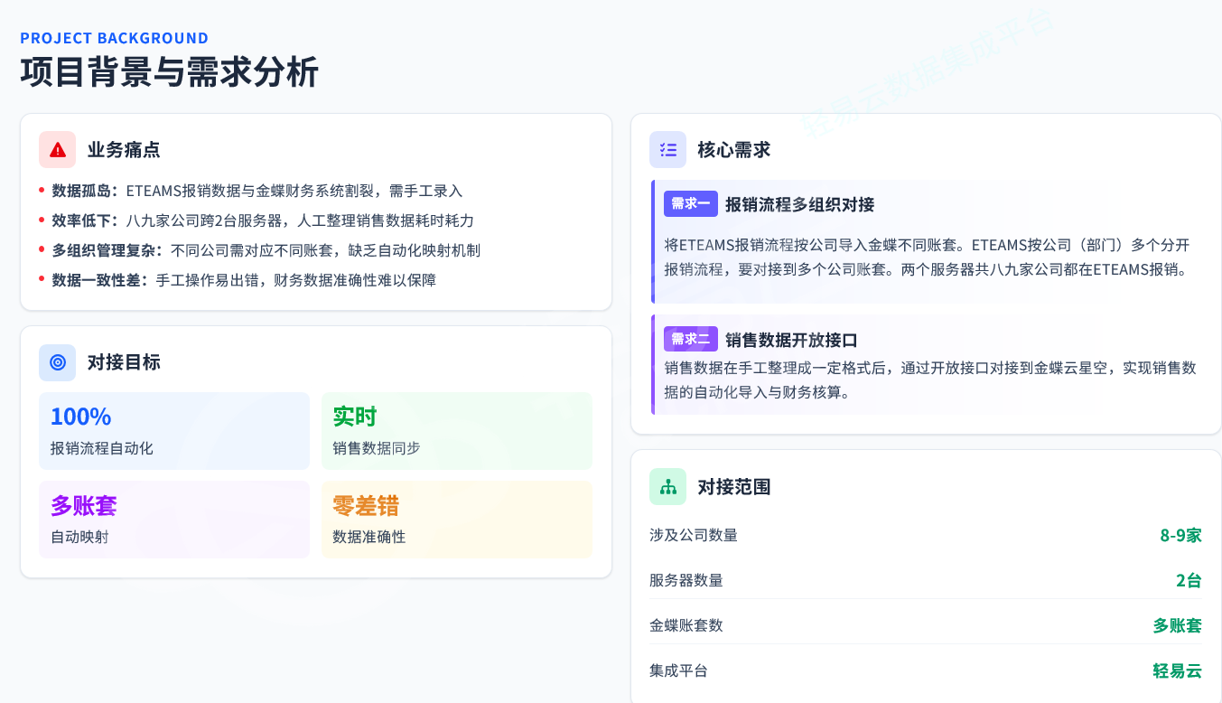 导读:本文分享一个真实项目案例——如何解决"八九家公司共用ETEAMS报销"和"销售数据手工导入"两大难题。不谈概念,只谈落地。