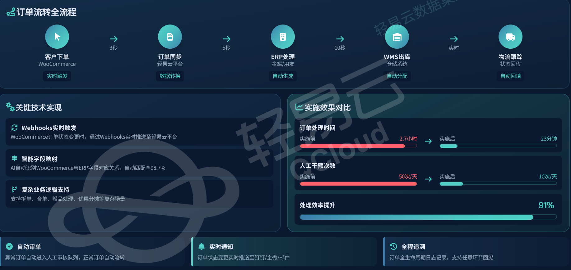通过轻易云的实施,WooCommerce独立站企业能够实现: