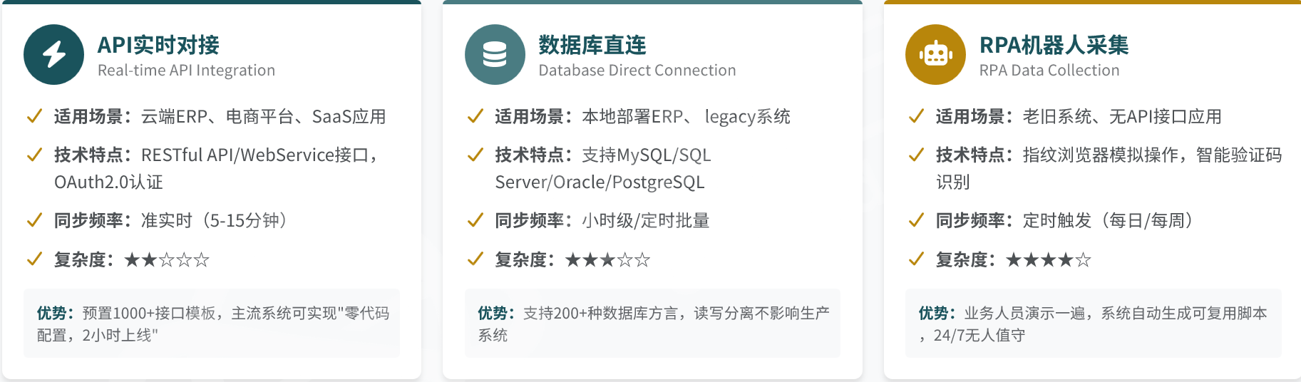 │ 支持:数据库CDC │ API调用 │ 文件FTP │ 消息队列(MQ/Kafka) │