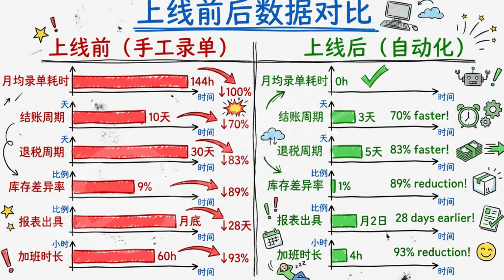 | 财务加班时长 | 月均 60 小时/人 | 月均 4 小时/人 | 减少 93% |