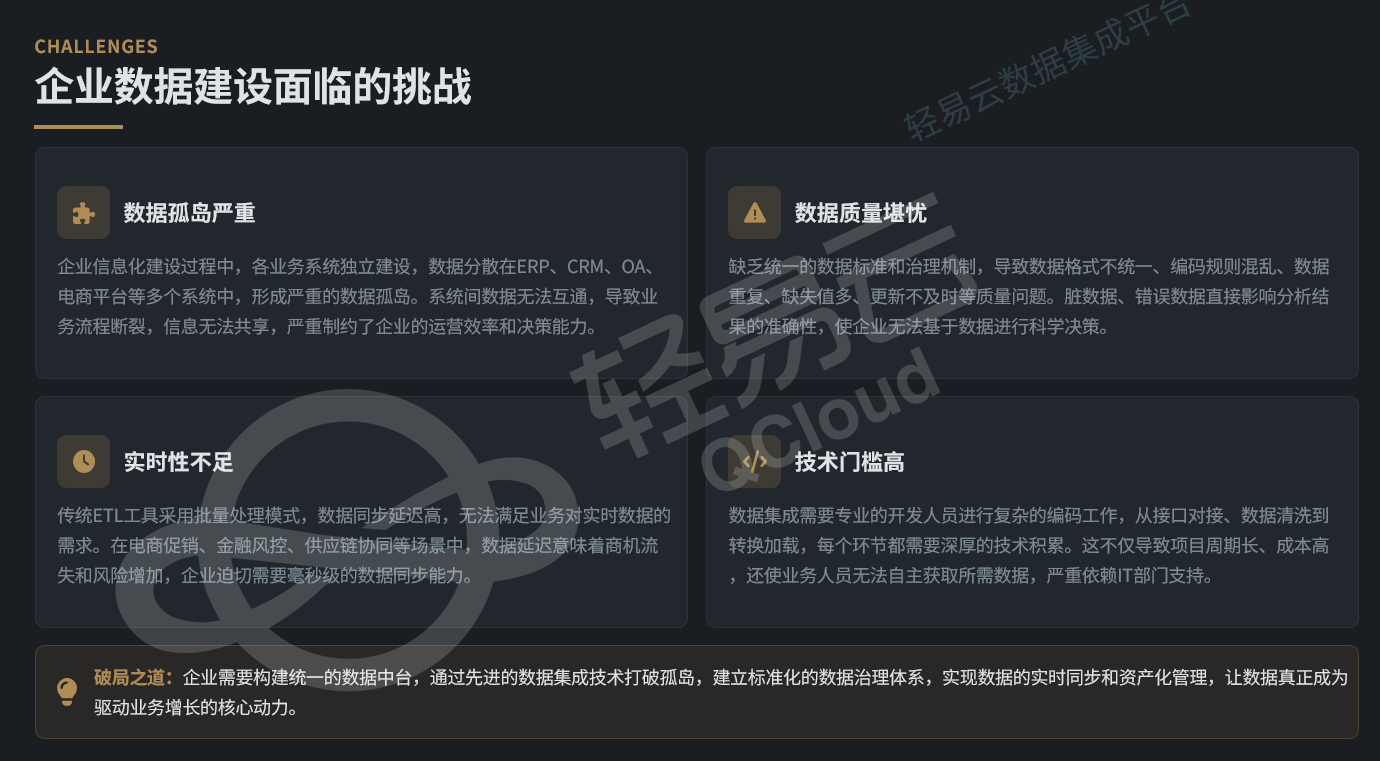 构建统一的数据中台,通过先进的数据集成技术打破孤岛,建立标准化的数据治理体系,实现数据的实时同步和资产化管理,已成为企业数字化转型的必然选择。