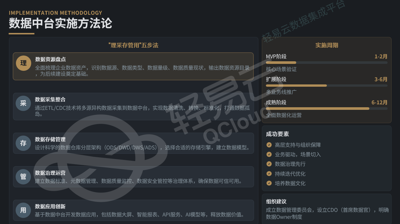 采(数据采集整合):通过ETL/CDC技术将多源异构数据采集到数据中台,实现数据清洗、转换和标准化,打通数据孤岛。