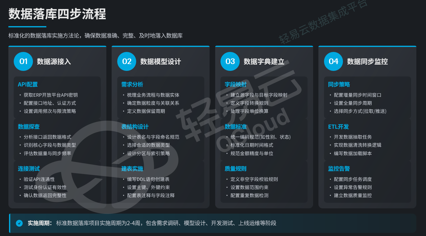 标准化的数据落库实施可分为四个阶段: