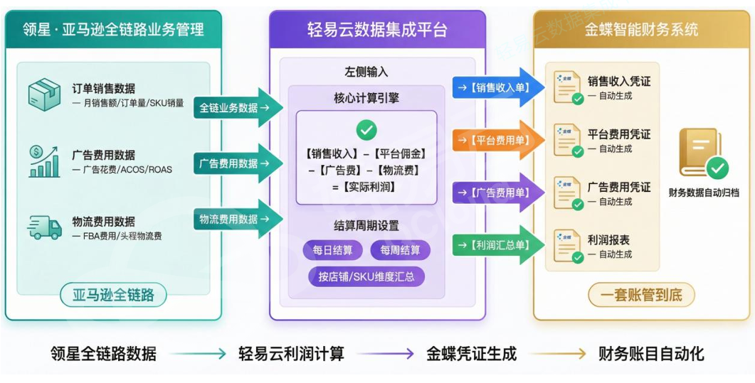 真正的打通,是让业务系统(聚水潭+领星)负责"做事情",让财务系统(金蝶云星空)负责"记清楚"。
